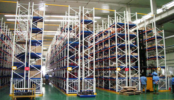 窄巷道貨架 窄巷道托盤式貨架又稱VNA貨架,專指常規(guī)橫梁式貨架系統(tǒng)選用的叉車為三向叉車時的系統(tǒng),其與常規(guī)托盤式貨架系統(tǒng)相比,區(qū)別在于窄巷道托盤式貨架系統(tǒng)的巷道寬度要比常規(guī)托盤式貨架系統(tǒng)小的多,一般