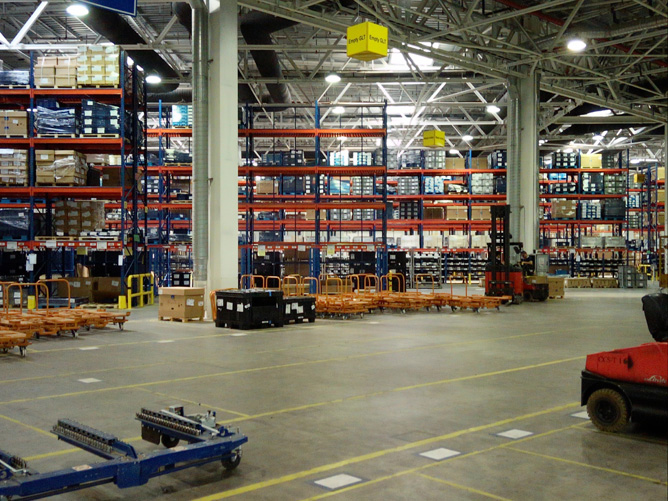 2、雙排貨架并排,通道減少,空間利用率高。