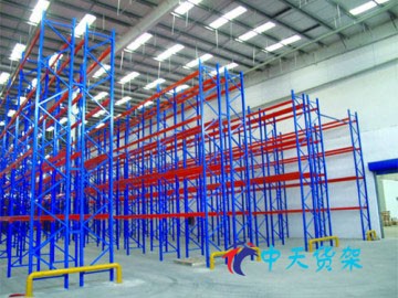 貫通式貨架又稱(chēng)通廊式貨架或駛入式貨架。貫通式貨架采用托盤(pán)存取模式,適用于品種少,批量大類(lèi)型的貨物 貫通式貨架儲存。貫通式貨架除了靠近通道的貨位,由于叉車(chē)需要進(jìn)入貨架內部存取貨物,通常單面取貨建議不超過(guò)7個(gè)貨位深度。為提高叉車(chē)運行速度,可根據實(shí)際需要選擇配置導向軌道,與貨位式貨架相比,貫通式貨架(駛入式貨架)的庫空間利用率可提高30%以上,貫通式貨架(駛入式貨架)廣泛應用于冷庫及食品、煙草行業(yè)。
