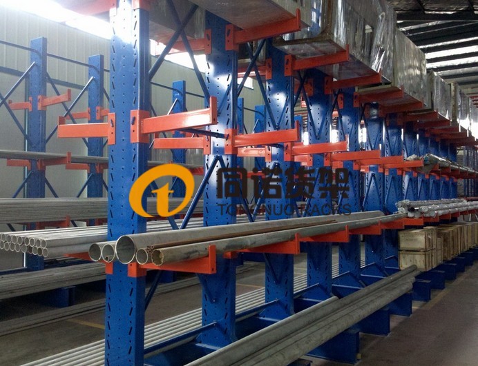 6、懸臂貨架可由叉車(chē)、行車(chē)和人工存取,通常高度在2500mm以?xún),如運用叉車(chē)存取高度可達6000mm。