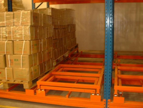 壓入式貨架非常適用于冷庫或存儲區域有限但急需增加儲位面積的場(chǎng)合使用,在國內已有很多的應用。